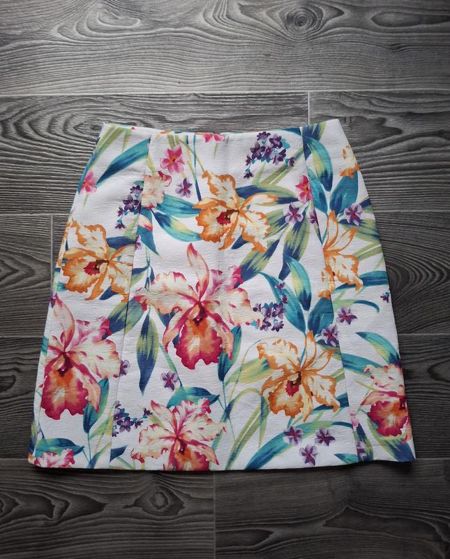 Нова стильна спідниця у квітковий принт. Якісна цупка тканина, насичений принт, чудово сідає по фігурі. Розмір - S. Довжина - 50 см. Ідеально підійде на такі параметри: ОТ - 62-76 см; ОБ - 84-96 см. Підійде для різних образів.