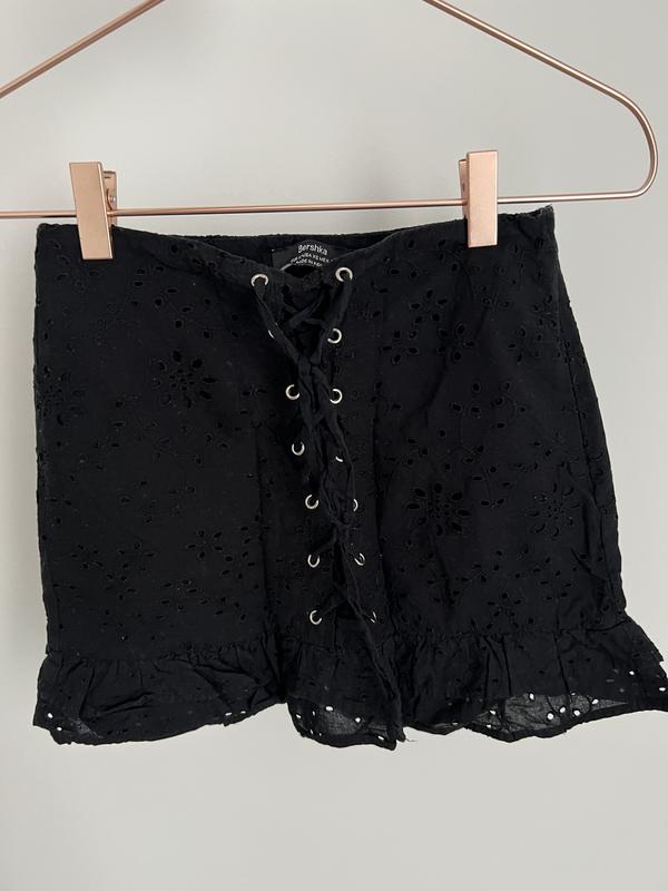 Продам чорну спідницю бренду Bershka, розмір xs, з натуральної бавовни 100% прикрашена кружевною оборкою та завʼязками. Застібається на блискавку збоку. Пересилаю, якщо треба