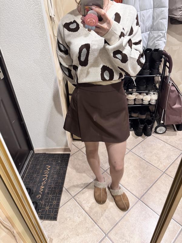 Спідниця -шорти приємного шоколадного кольору українського виробництва Спереду виглядає як спідниці , позаду шортики Збоку є блискавка Розмір М , тягнуться на 2-3 см додатково . Приємний мʼякий матеріал НОТ -34см НОС-49см Довдина від талії -37см
