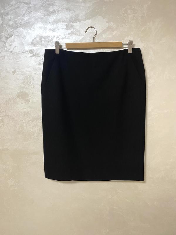 Класична чорна спідниця премиального французького бренду GERARD DAREL. Розмір L. Є дві бічні кишені. Тканина добре тримає форму. Довжина 58 см, напів об’єм талії 40 см, напів обхват стегон 50 см. Склад: Polyester 64 см; Viscose 27%, cotton 6 %, Elastane 3 % , Підкладка: Acetate 100%.