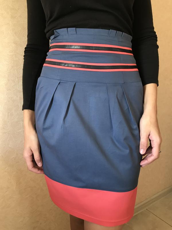 Спідниця в чудовому стані, з високою талією, має дві кишені з боків, застібається на блискавку. Розмір М. Довжина 54 ПОТ 35