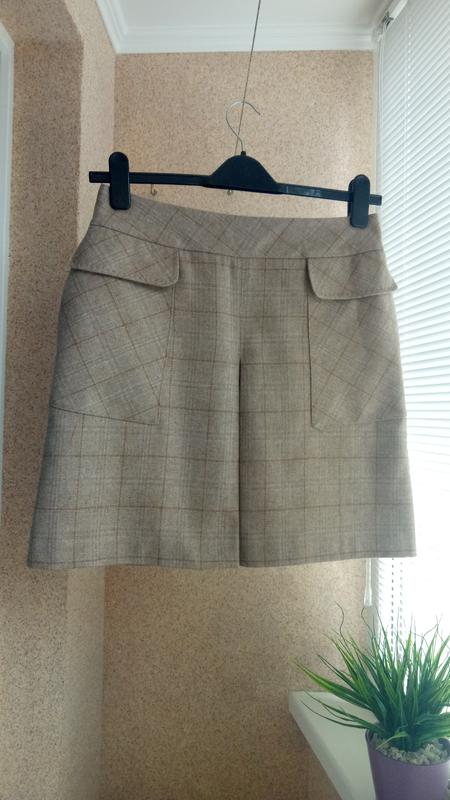 На підкладці. З бічними кишенями. Напівобхват талії - 38 см, Напівобхват стегон - 50-51 см, Довжина спідниці - 48 см)