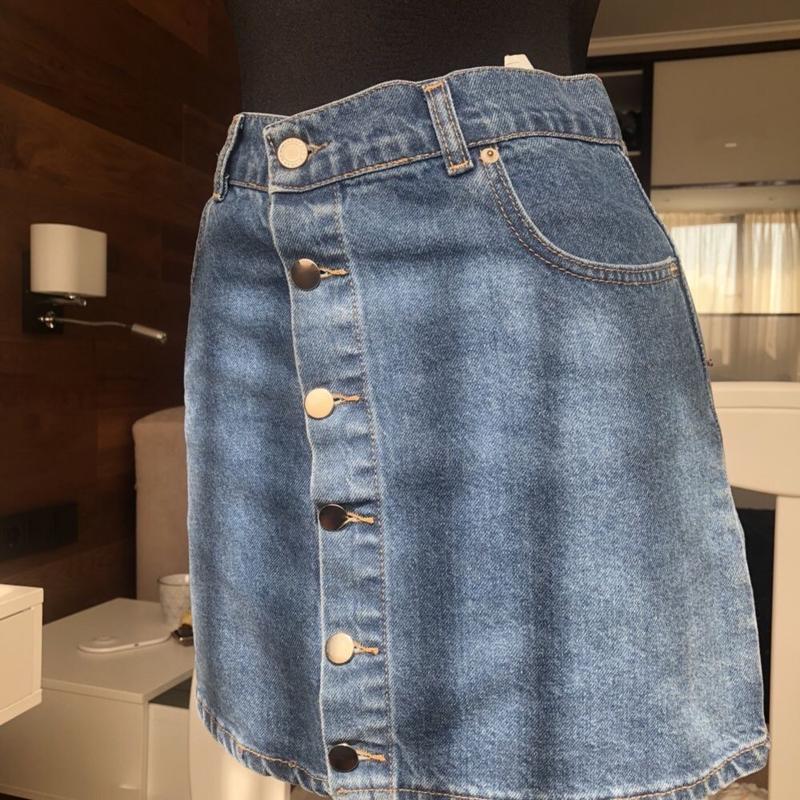 Джинсова спідниця. Зовсім нова. Вділа 1 раз. Трохи тіснувата. Розмір 38. Заміри додаються на останніх фото.