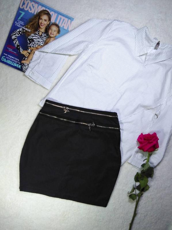 Спідничка в ідеальному стані, розмір хс-с, декорована блискавками. ПІТ -31см, ПОБІДИ-44 см, довжина -41 див. Тканина 100% бавовна, не тягнеться.