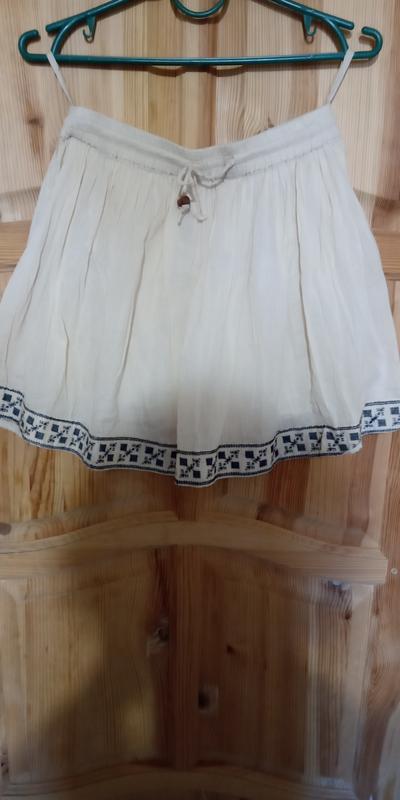 Бавовна, клешная спідничка ,під " юпник теж хлоплк, колір молочний.