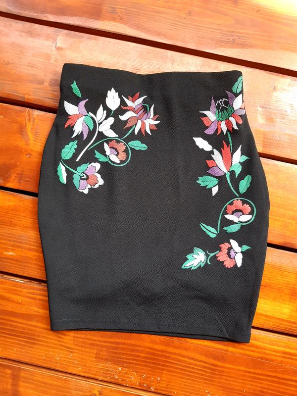 Спідниця з гарним малюнком. Пояс на резинці. Розмір С-М. Дуже добре тягнеться. Стан нової речі. Доажини від пояса до низу 45 див. У вільному стані ПО талії 32см , стегна 40 см