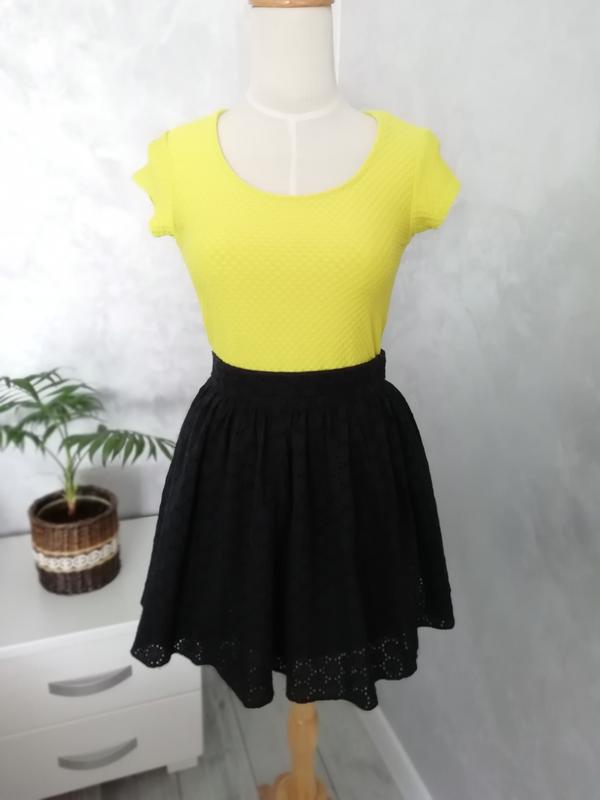 Спідниця міні на замку і має підкладку. Тканина прошва Довжина 42, пояс до 65.