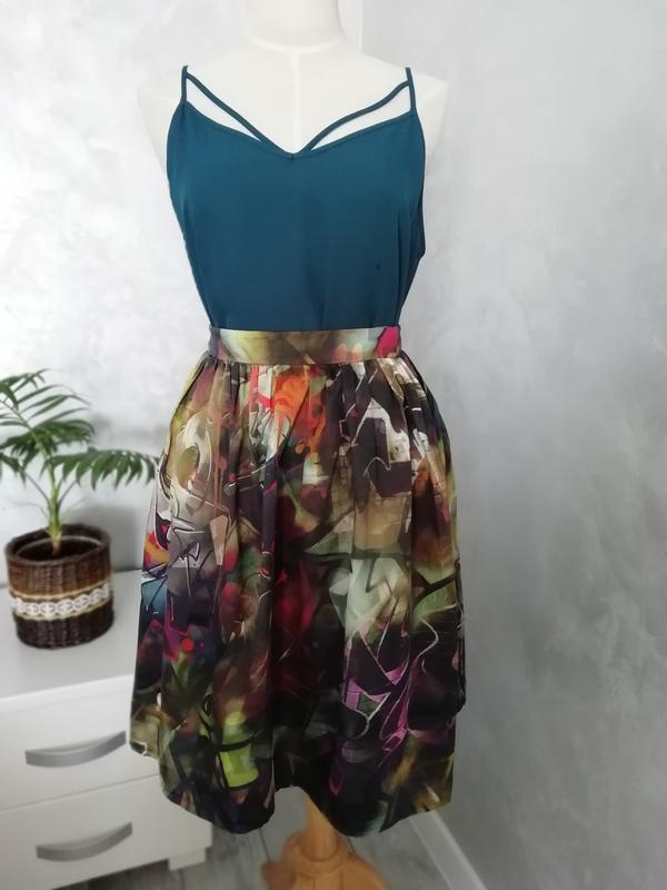 Спідниця на замочку і має підкладку. Тканина котон. Довжина 58, пояс до68.