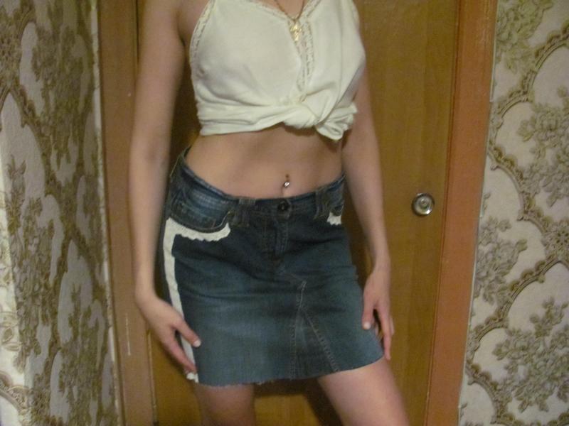 Джинсовая юбка ручной работы,украшена кружевом.