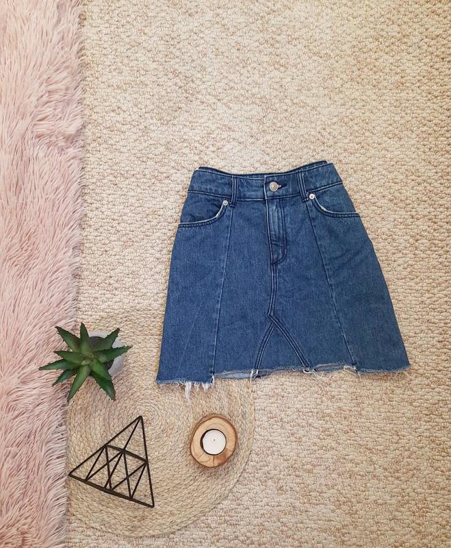 💜 Джинсова спідниця від H&M 💜 Висока посадка ✔ Ідеальний стан 👍 💙 Склад: 100% котон. 💙 Розмір 36(XS/S). Заміри: 🧡 поп - 35см; 🧡 поб - 46см; 🧡 довжина - 37см.