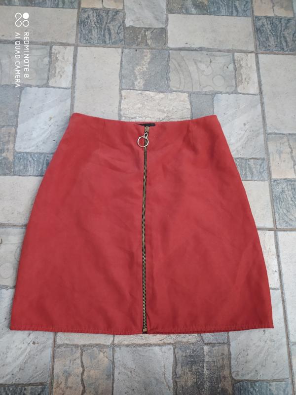 спідниця трапеція на замку,тканина під замш,колір цегельно-червоний