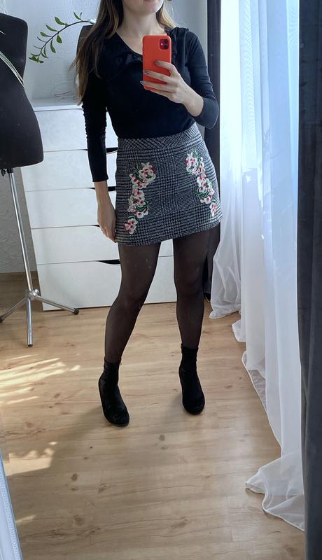 Ідеальна спідниця 💐 з вишивкою, щільна на підкладці👍🏻 від#george сідає і виглядає супер 💣 ▪️Розмір-8{S} ▪️Довжина-37см ▪️ПІТ-35см ▪️ПОБІДИ-49см