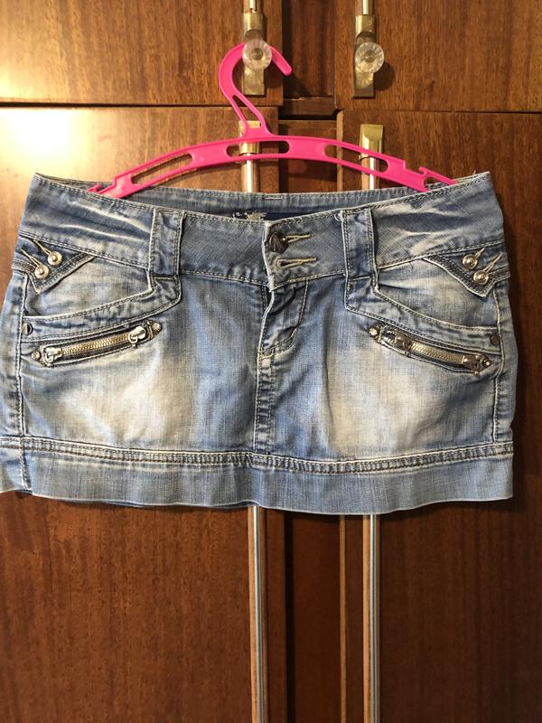 Стильна джинсова міні-спідниця на гудзиках і блискавки ПІТ 40, ПОБІДИ 46, довжина 26