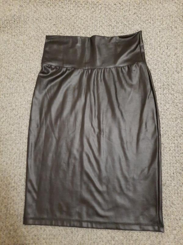 Спідниця-олівець з полегшеного матеріалу "під шкіру". Бренд OLKO. Розмір xs. Напівобхват талії - 30 див. Напівобхват стегон - 38 см. Довжина спідниці - 56 див. Нова.