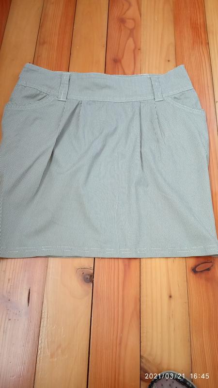 Сіра спідниця в дрібну смужку з кишенями по боках.В хорошому стан,заміри на фото.За додатковою інформацією звертайтеся радо всім відповім 🤗.При покупці двох промов отримаєте знижку