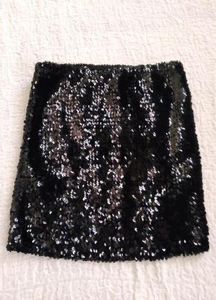 Спідничка міні в паєтках, чорна ,зручна , розмір S-M. За необхідності більше фото і заміри. Можливий торг=)