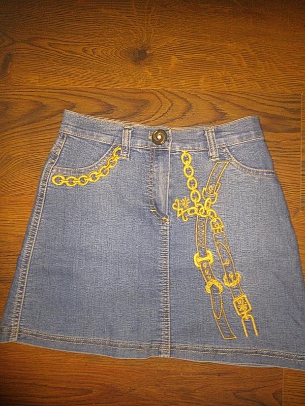 Джинсова міні-спідниця з ланцюгами, ПІТ 33, ПОБІДИ 43, ДІ 36