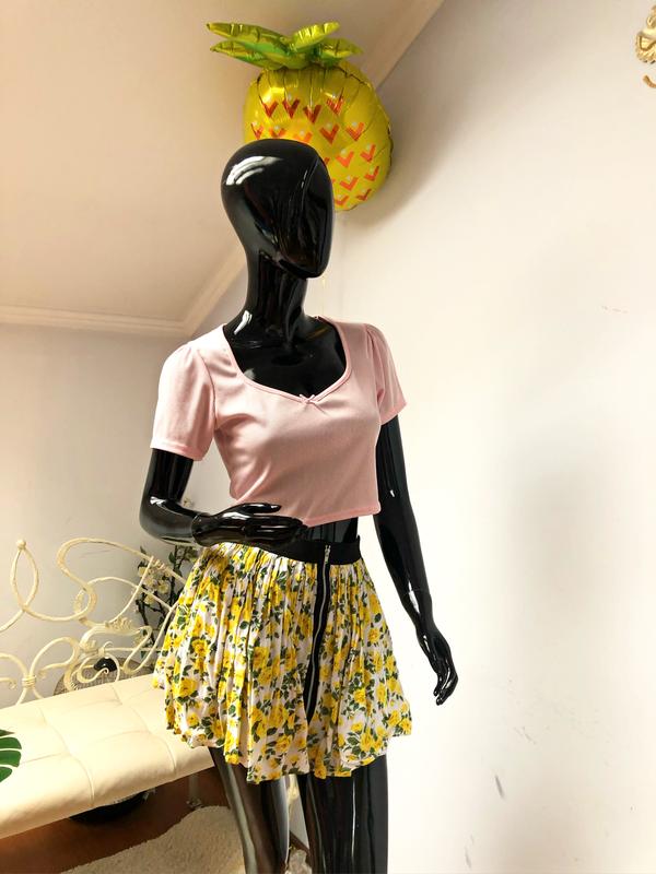Яскрава Спідниця в жовті квіти.Має бутафорний замок спереду і підкладку 🏷190 грн Розмір хс 3 речі=безкоштовна доставка💗