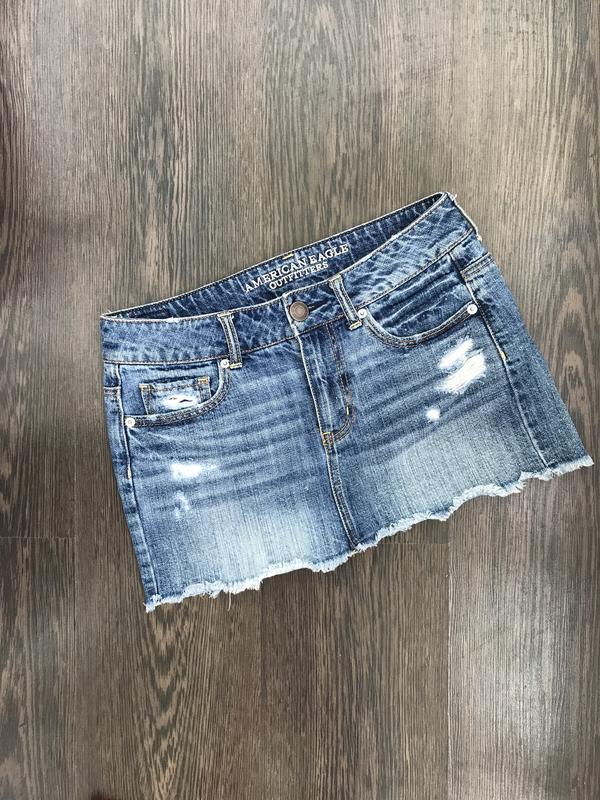 Класна джинсова спідниця міні з потертостями. Купувала за 900 грн. Розмір 2 наш ХС-З Пересилаю