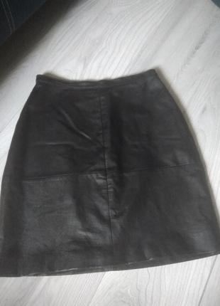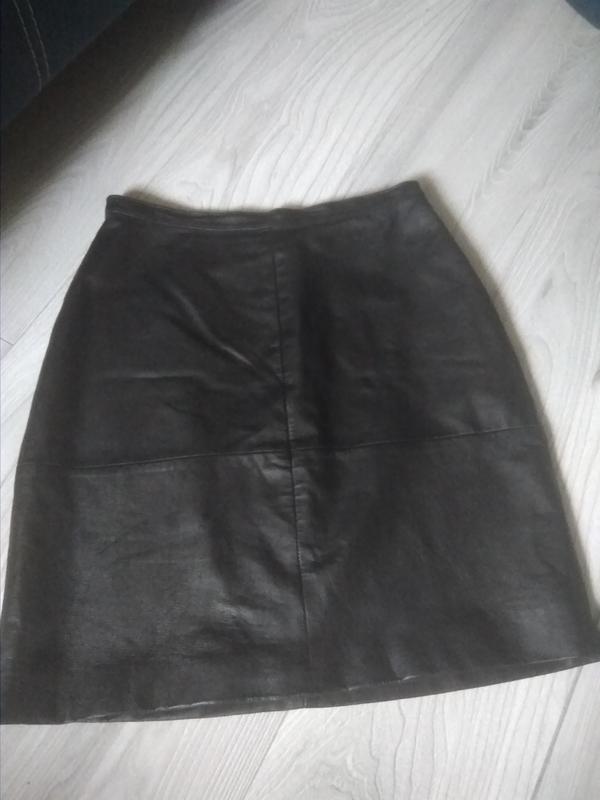 Кожаная юбка, на подкладке по бокам внизу небольшие разрезы Кожа очень мягкая!! Застегивается сзади на замке Длина 47см Пояс 34см Беда 48см
