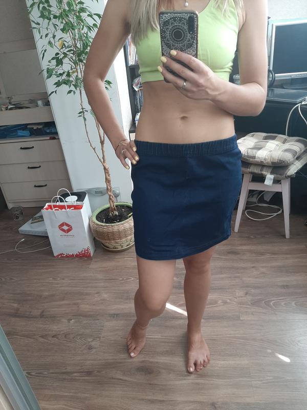 Юбка джинсовая, мини, размер указан L, но это М. Новая, тёмный эластичный джинс, на резинке