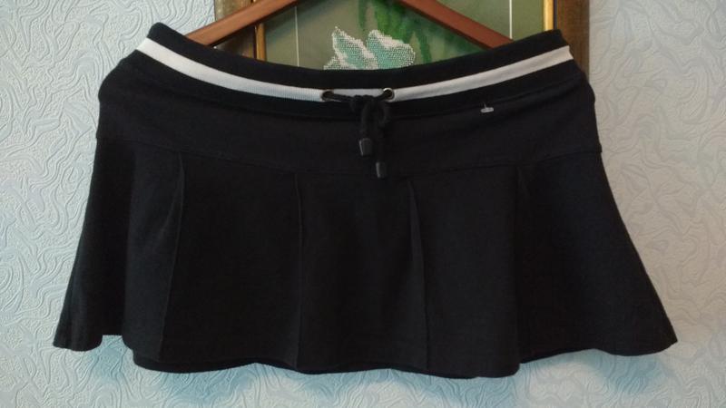 Відмінна спортивна спідничка коттон на 10-12 розмір, ідеальний стан ( єдиний ньюанс - немає пластикової фурнитурки на одному шнурочку) ,слідів шкарпетки ні, довжина 30, ширина вгорі 39-45, талія занижена, тканина з еластаном відмінно тягнеться,на стегнах розширення за рахунок складочок.