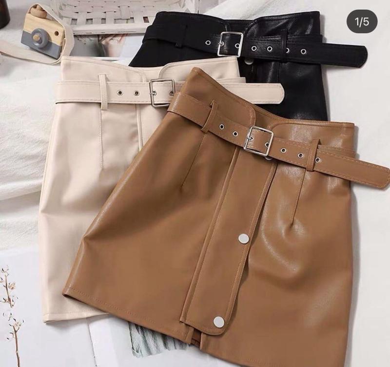 Спідниця Розміри: 42-44, 44-46 Поясок в комплекті! Тканина - еко-шкіра Колір: світлий беж, кемел, чорний