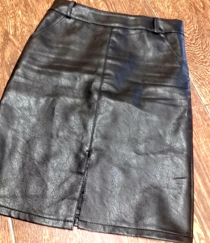 Шкіряна спідниця з кишеньками, дуже стильно дивиться на тілі. Розмір пише М, маломірить.