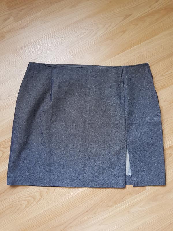 Спідничка нарядна з сріблястою ниткою, довжина 43 см, талія 44-45см, блискавка 20 см, розріз 15 см, стегна 55 см, низ 55 див.
