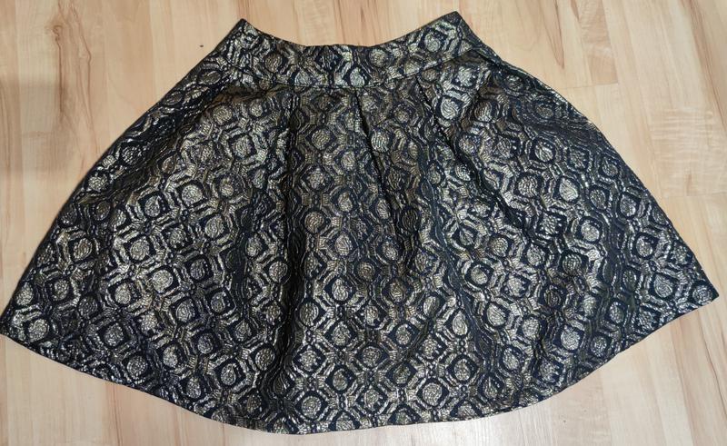 Дуже красива спідниця, чорна з золотом нитка, довжина вище коліна, розмір S, стан як нова, без дефектів. Перешлю.