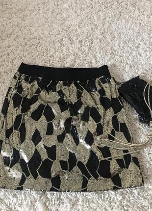 Нарядна спідничка в паєтки пояс на резинці, є підкладка. Розмір m/s пояс гарно тянеться.