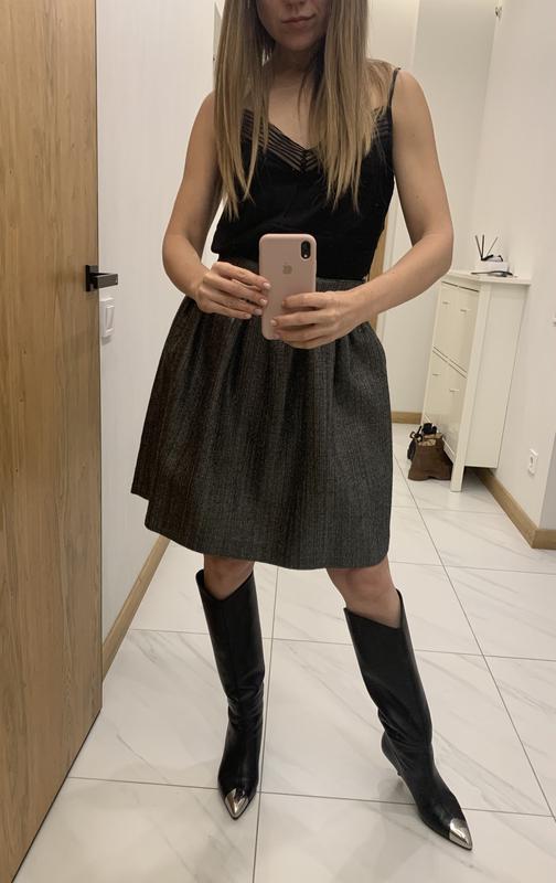 Очень классная и стильная юбка. Плотная, теплая, в составе есть шерсть (фото этикетки есть в карусели), при этом нарядная и праздничная с люрексом и металлизированным эффектом, идеальная вещь для новогодних праздников. Внутри очень мягкая, поэтому даже зимой будет тепло. Подойдет на S, небольшую М. На фото надето на рост 160 см, талия - 65 см. Красиво смотрится, как под блузу, майку, так и под черный деловой пиджак. Параметры изделия: Длина - 51 см В поясе - 68 см
