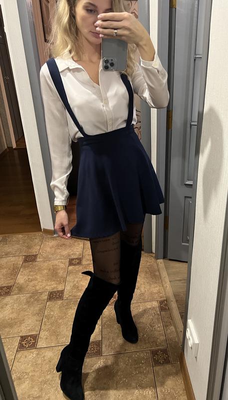 В ідеальному стані темно стня спідничка, на талію 63-66 см Мої параметри 88-64-88, зріст 168 Лямки можна відстігнути Сорочку в разі купівлі спідниці віддам за 130 грн