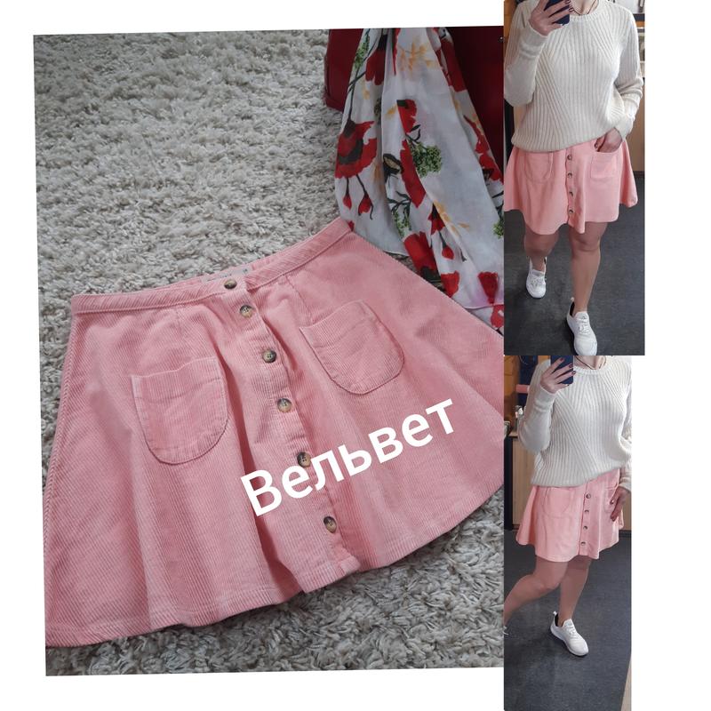 Стильная вельветовая юбка мини , на пуговках , с карманами, размер указан 14-16 на фото на 12 и рост 170. Замеры ПОТ 42-45 длина 43