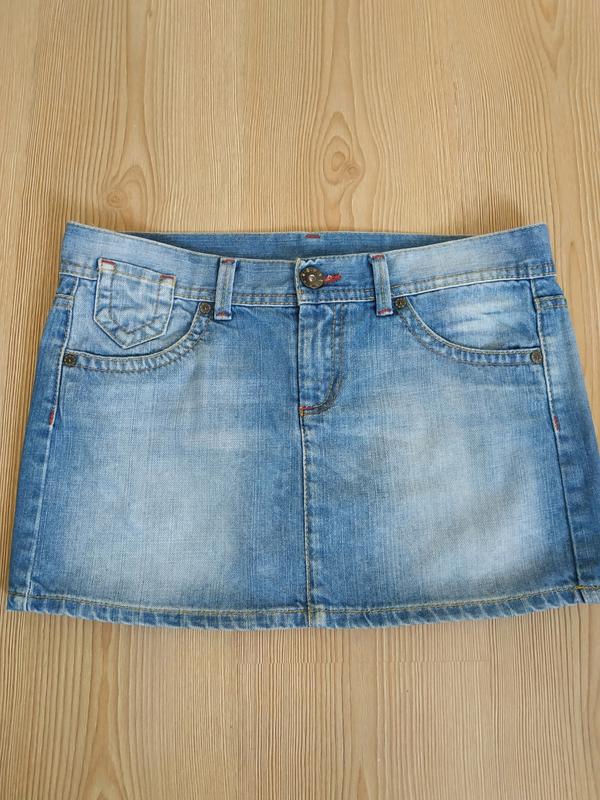 Джинсова спідниця міні, BENETTON, бедровка. Розмір - 40. Виробництво - Італія. Напівобхват по лінії пояса - 41,5, напівобхват по лінії стегон - 46,5, довжина спідниці з поясом - 31 див.