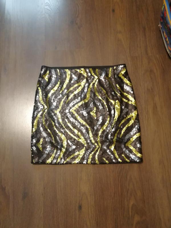 Стан ідеальний, струнким і тягне, на резинці. паєтки все на місці, матові. Виглядає дуже здорово. Паєтки кольору хакі, чорні, сріблясті.