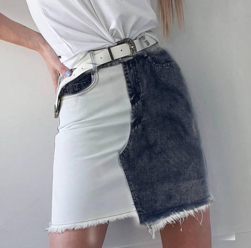 Спідниця з поясом Модель: 5776 Розмір: S, M, L, XL Колір: джинс (пояс в комплекті) Колір: чорно-білий, синьо-білий