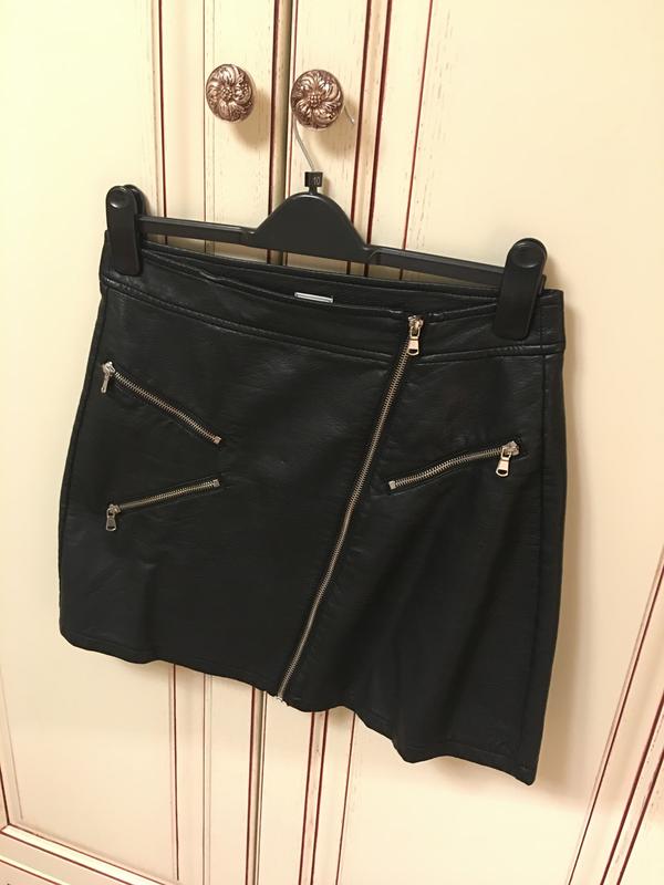 Міні спідниця під шкіру із замочками, дуже стильна Довжина 41 Піт 38,5( середня посадка) Побіди 51 Трапеція Оплата на приват або безпечна.