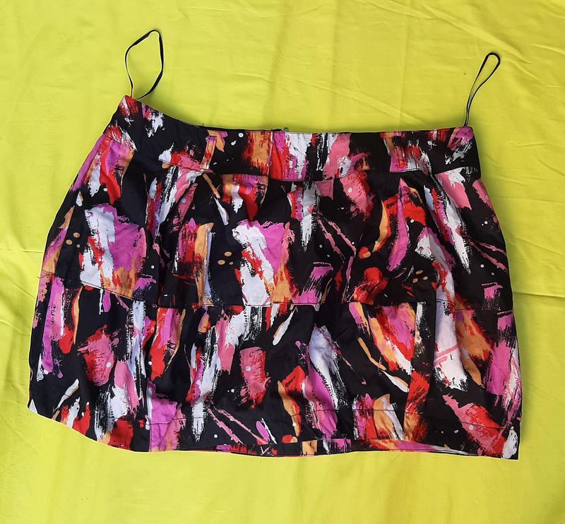 Оригінальна спідниця міні, мікс яскравих кольорів, фасон купол. Довжина 38см ПІТ 45см ПОБІДИ 70см По низу 60см