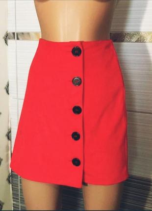 Спідниця червоного кольору, тканина під замш. Стан ідеальний.