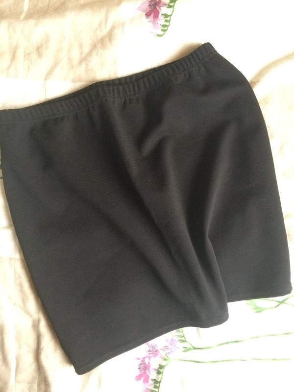 Еластична спідниця чорного кольору, пояс-гумка. Заміри(см): ПОТ-від 37 до 46, ПОБІДИ-52, довжина 43 см