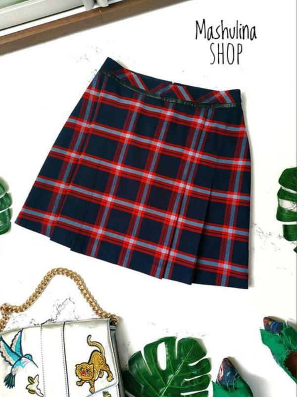 Стильная юбка в клетку фирмы Oasis, размер 8. ПО пояса - 35 см. ПОБ - 47 см. Длина - 45 см. 64% полиэстер, 34% вискоза, 2% эластан.