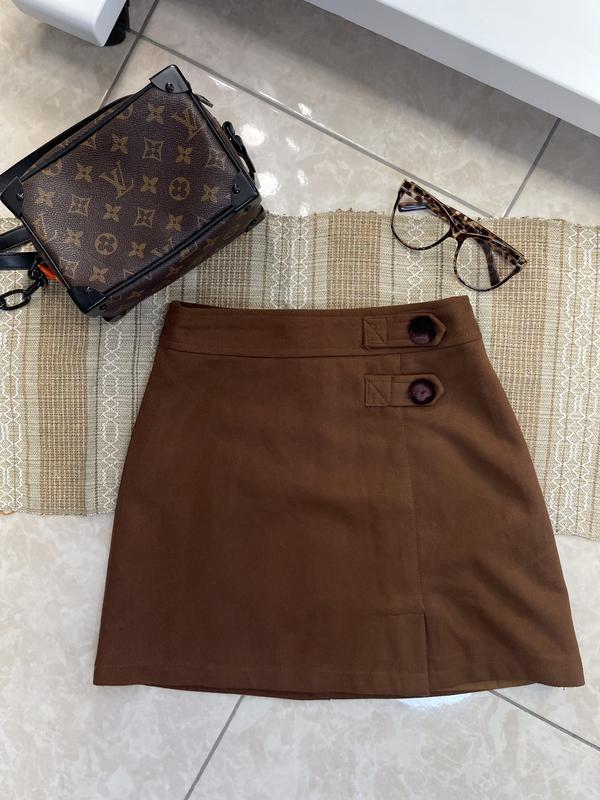 Коричнева спідниця замш, розмір S. Стан ідеальний, дуже красиві 2 гудзики, ззаду на блискавці. Довжина 37 см .