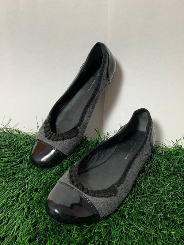 Жіночі балетки, туфлі від Tommy Hilfiger. Розмір 38. Ззовні комбіновані - тканина (по типу вовни, чи войлока) та штучна шкіра. Внутрі шкіряні. Стан гарний ( є невеличкий нюанс видно на останьому фото).