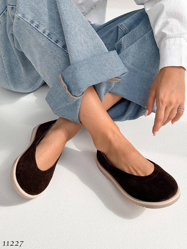 Код 11827🍃туфлі балетки з анатомічним носиком натуральний замш коричневі шоколад