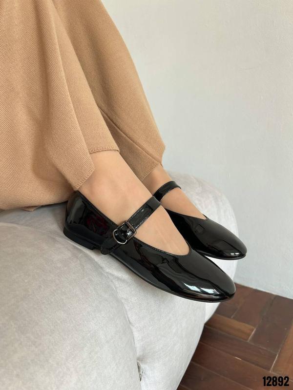 НОВИНКА 🤍 Код 12892 Балетки Еко-лак Колір Чорний Підошва 1см-0,5см Розмір у розмір 36-23,5см 37-24см 38-24,5см 39-25см 40-25,5см 41-26см