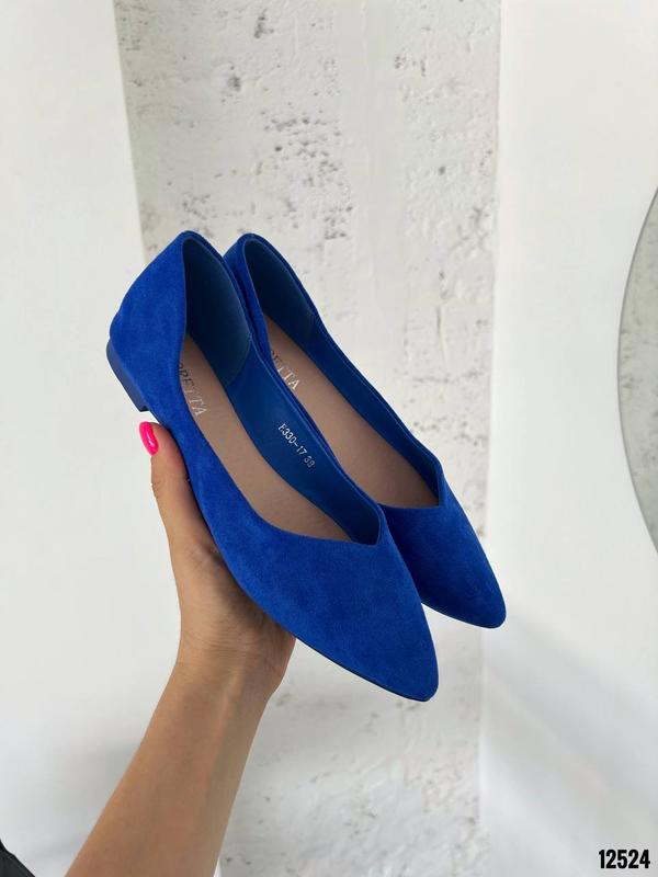 Код 12524 Балетки Еко-замша Колір Електрик Підошва 1см-0,4см Розмір у розмір Дуже мʼякі 36-23,5см 37-24см 38-24,5см 39-25см 40-25,5см 41-26см