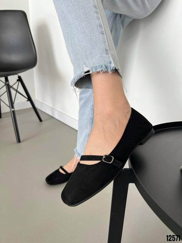 Код 12571 Балетки Еко-замша Колір Чорний Підошва 0,5см-0,2см Розмір у розмір 36-23,5см 37-24см 38-24,5см 39-25,5см 40-26см 41-26,5см