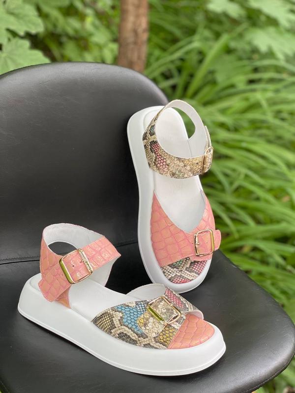 Босоніжки на високій підошві з ексклюзивної шкіри з тисненням багато кольорів