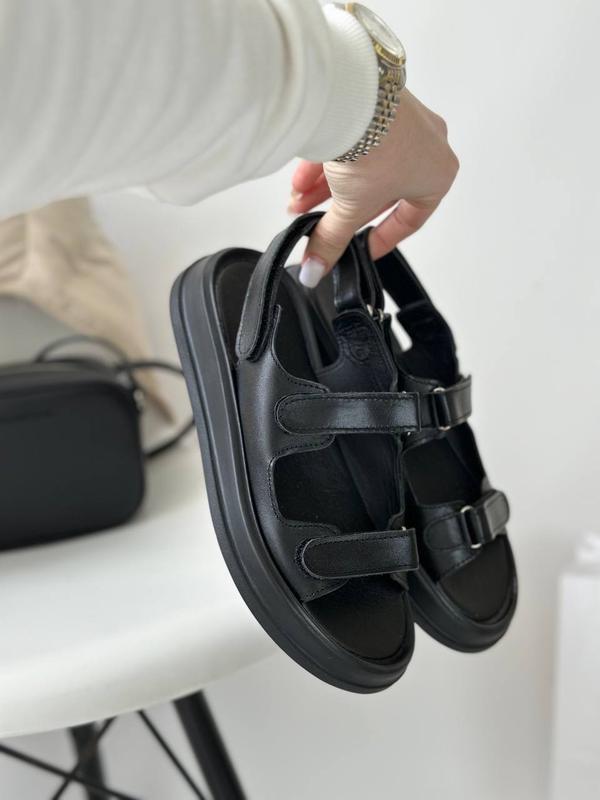 НОВИНКА🌺 Код 3392 Босоніжки жіночі на липучках, Натуральна шкіра устілка нат. шкіра розмір в розмір платформа 3,5 см колір чорний виробник - Україна